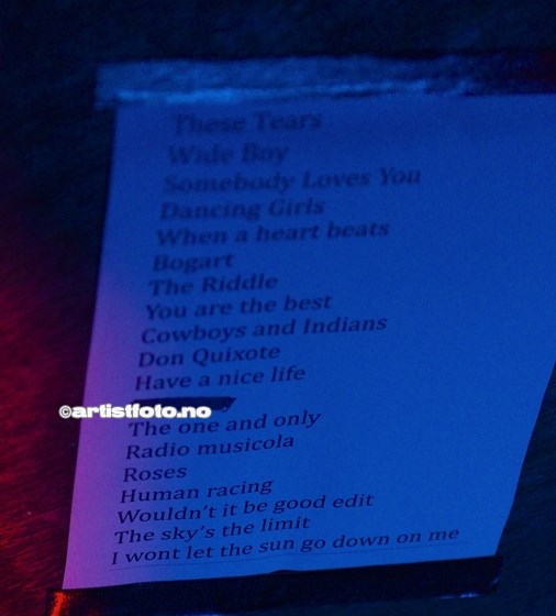 Han er en dyktig artist, men litt ut i første sang avbrøt han brått konserten, etter at en stakkars publikummer ville ta et bilde med mobilen sin. Lyset på iphonen lyste litt opp mot scenen, og herr Harley stoppet sangen og skjelte damen huden full. Jeg med flere, ble pinlig berørt av utbruddet, og det ble så stille i lokalet etter dette at det nesten var skummelt. Men musikalsk leverte han bra , med mange store hiter på repertoaret.
