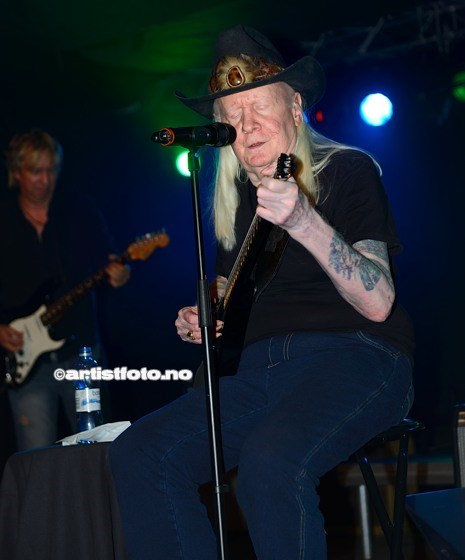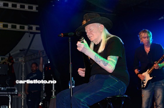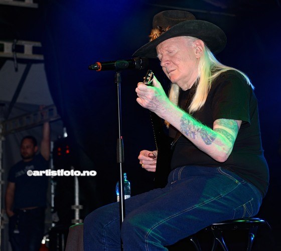 Johnny Winter avsluttet hele kalaset, og en sittende blueslegende leverte bluesrock man sjelden hører. Mannen er gammel og ser helt klart eldre ut enn bilder viser.