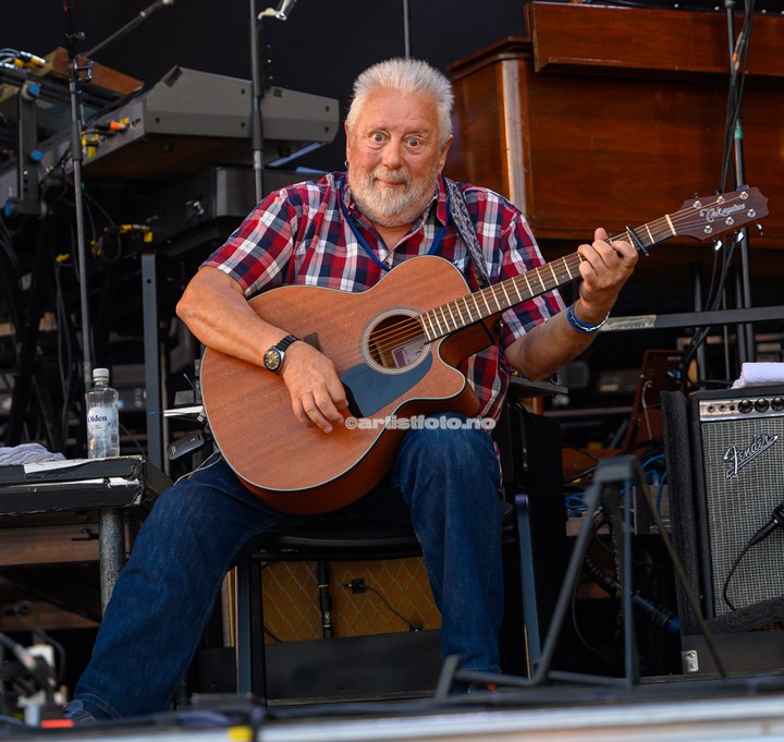 Gitarist Skjalg Raaen hoppet og spratt rundt på scenen og skapte adrenalinkick. Jeg synes nesten Åge kom litt i skyggen til tider, men utrolig moro med energiske artister som i kveld. Han kjørte gjennom katalogen av velkjente låter, og folk koste seg i sola